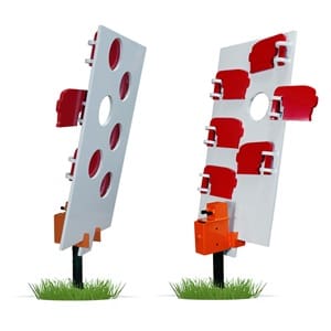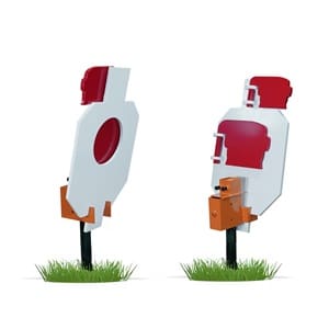 • The Swivel Paddles bring a fun twist, using gravity to sway back and forth when they get hit. The vibrant red paddles shift position upon impact, revealing a red circle when they’re hidden behind the main target and a head silhouette when they’re visible on the side of the main target.