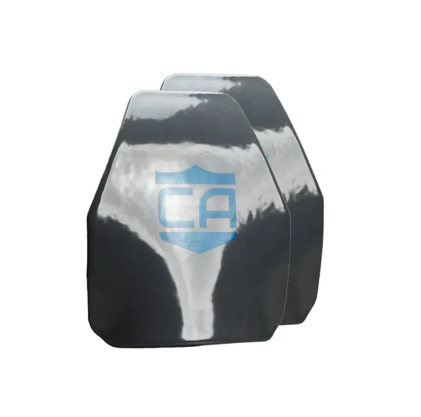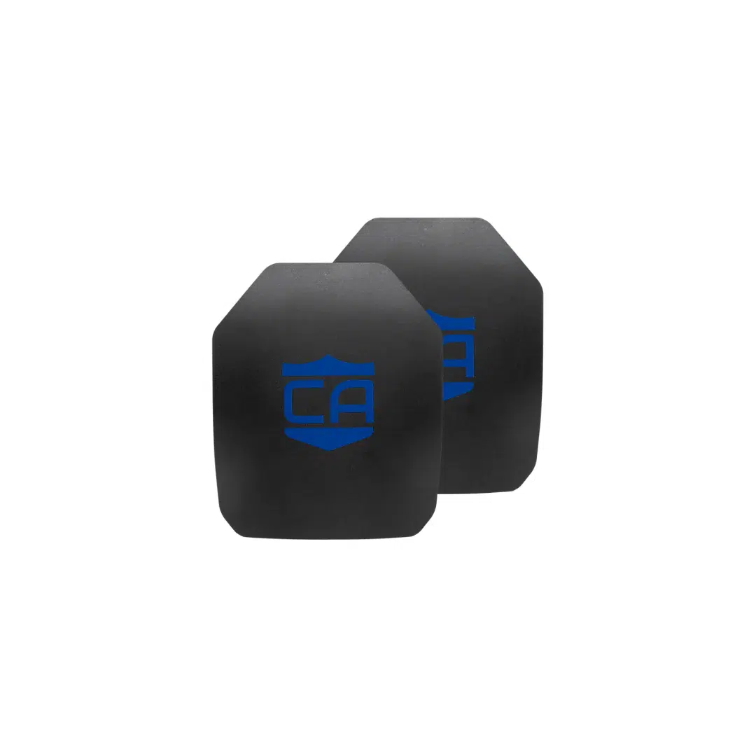 Includes (2) Caliber Armor AR550 Level III+ steel body armor plates. Choose size and shape.
