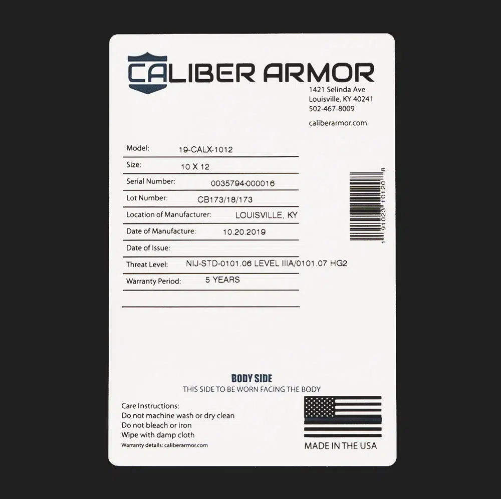 Caliber Armor manufacturers our CaliberX™ Soft Ballistic Body Armor line of body armor inserts in our facility in Louisville, Kentucky. We have created an affordable soft armor system that meets the gold standard of 1 lb. per sqft areal density.