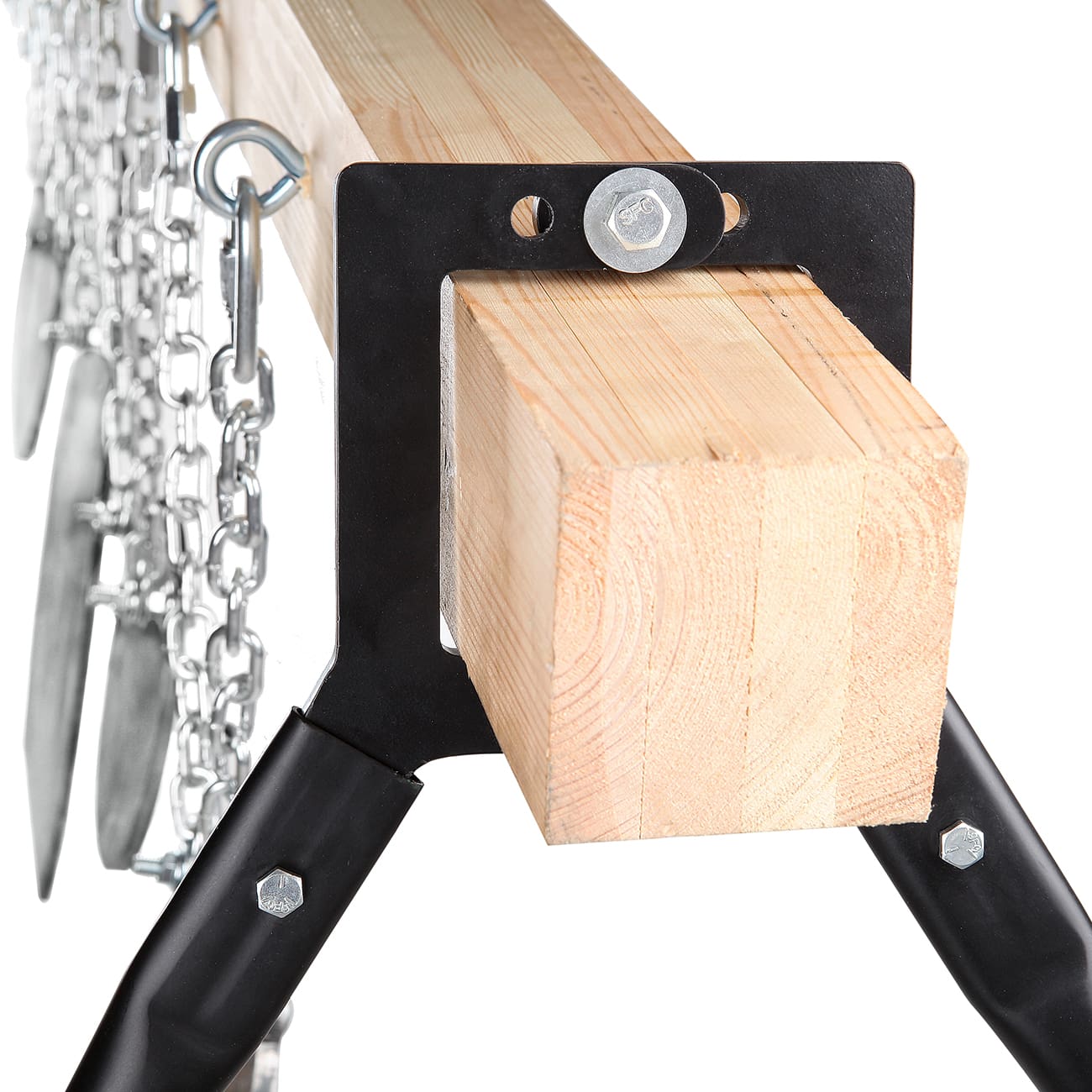 Scythe Armaments complete modular hanging target system. This pre-engineered system has powder coated and zinc plated components to provide you years of outdoor use. Contains all chain, quick links and eye hooks for a quick assembly. The “F” bracket assemblies are laser cut from A565 steel providing unmatched strength and versatility with the option of utilizing either 2×4 or 4×4 wood members for the assembly. The heavy steel end-formed legs provide a tight fit to the “F” bracket assemblies to lock out the weather and give a sturdy stance. The Target stand is complete with full instructions and CAD drawings for a quick and easy assembly.