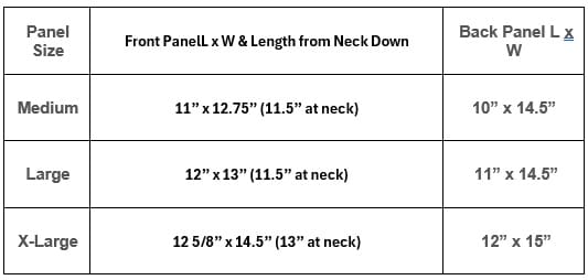 - Plate Sizes: Medium, Large, X-large (Made to fit all shirt sizes)