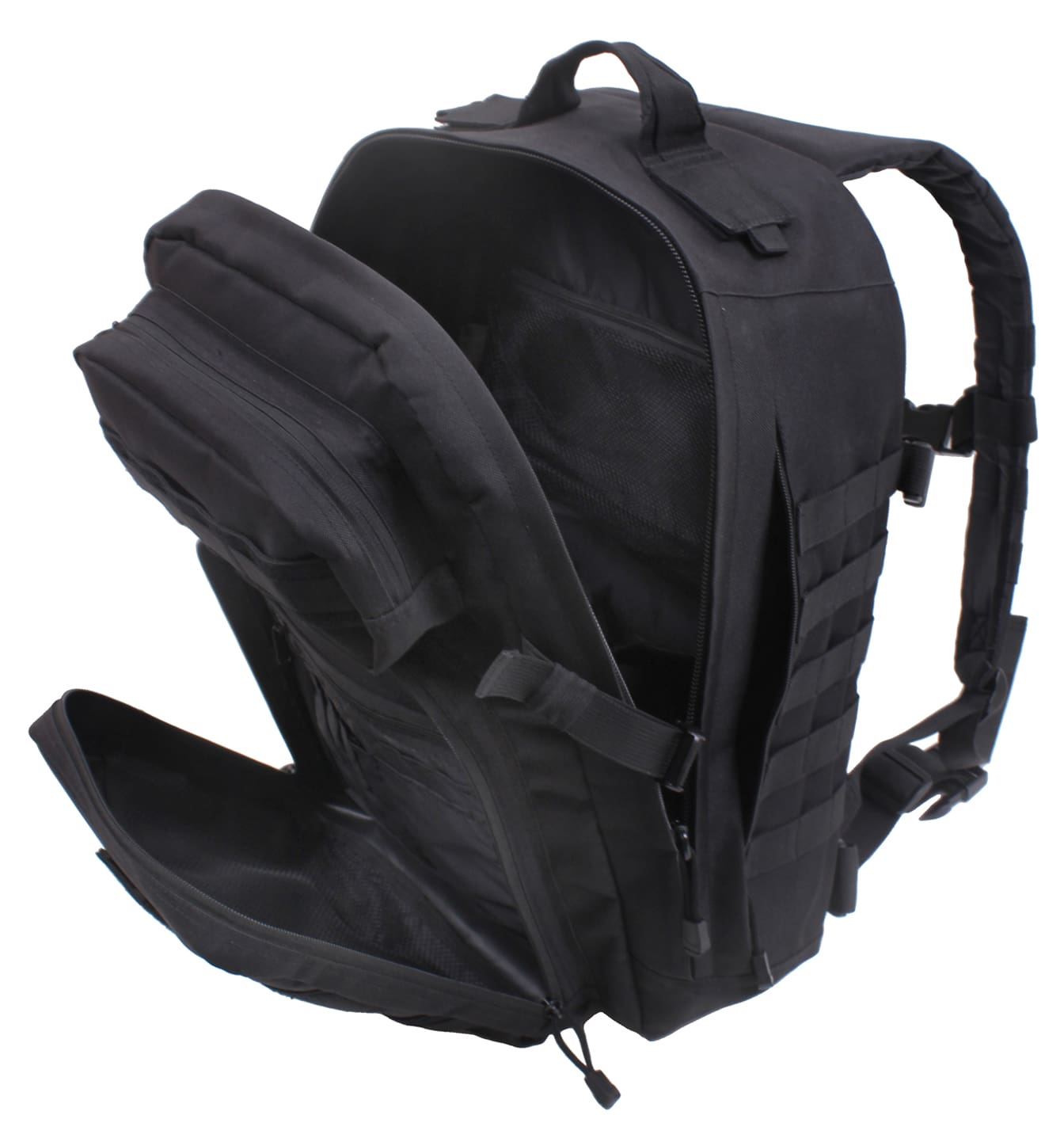 Our Fast Mover Tactical Backpack is the go-to solution for quick access to your tactical gear and outdoor supplies, featuring a main compartment with 3 zippered mesh pockets and drawstring pouch, 2 additional zippered storage compartments, and 2 concealed side pockets, all equipped with two-way zippers for full access. The tactical pack has a 34L capacity and measures 9 inch x 12 inch x 19 inch, providing ample storage space for EDC essentials, and is great for going to the range, trekking out into the wilderness, or stocking up as a bug out bag. Rugged Construction: Engineered with 600D polyester, these tactical military bags are built tough, withstanding strenuous activities while out in the field. From tactical operations to outdoor adventures, the MOLLE backpack keeps your gear safe and secure, no matter the mission. Ergonomic Design: The travel backpack features padded shoulder straps that naturally contour with your shoulders and a breathable padded mesh back for a comfortable carry. The backpack shoulder straps are also adjustable, allowing you to adjust the traveler bag when needed. The top carry handle provides quick and easy handling for when you are on the go. Ready for Action: The survival bag comes equipped with a removable sternum strap and removable waist strap for weight distribution when carrying heavy loads. Both straps feature a quick-release buckle for rapid and easy on/off. The side cinch straps provide additional adjustment when traveling. Utility at the Forefront: These MOLLE compatible backpacks consist of PALS webbing on the outside for mounting and securing additional tactical gear. In addition, these tactical rucksacks feature a rear hydration compartment with dual passthrough ports for a hydration hose, ideal for camping, hiking, and other outdoor activities. Please note, hydration system not included.