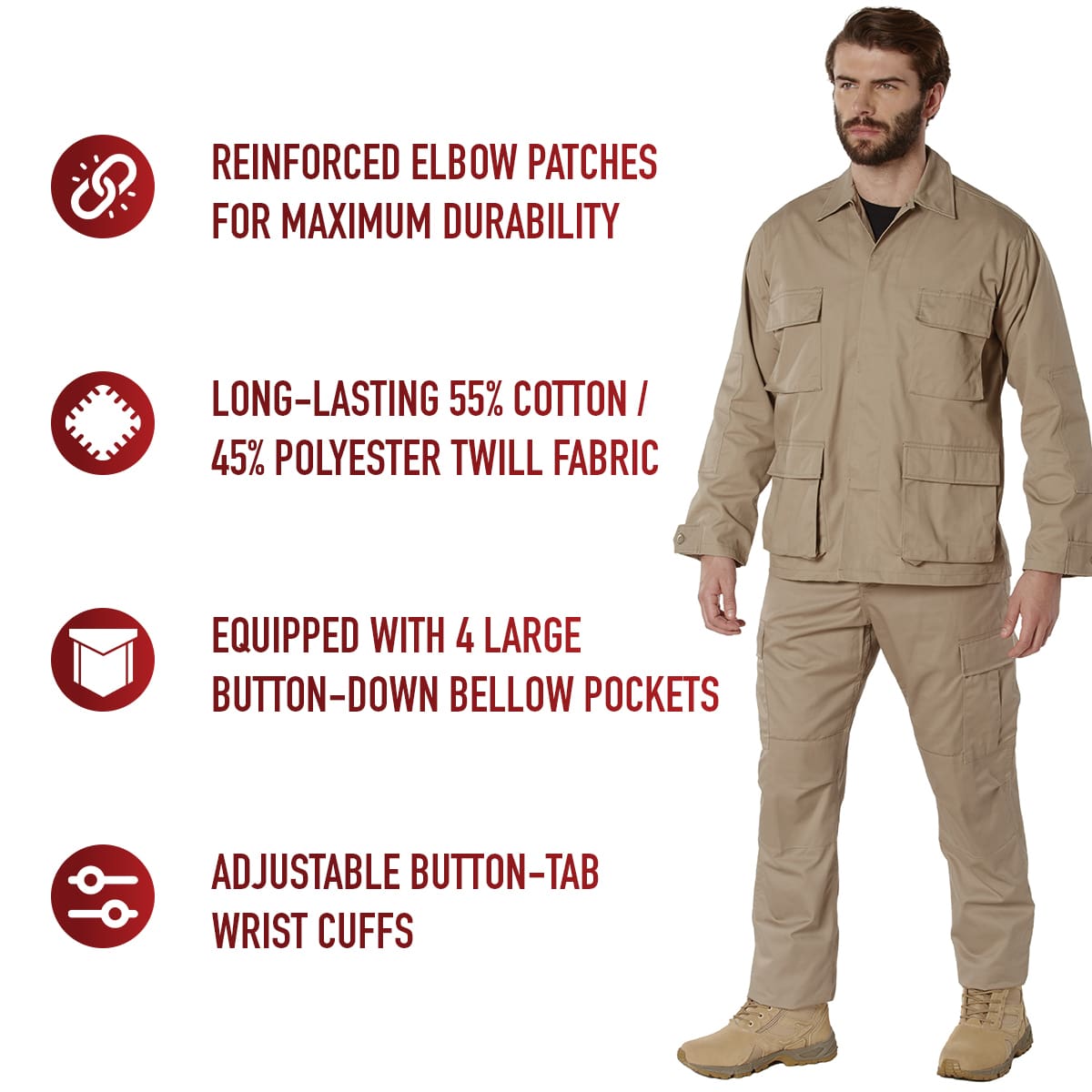 - UNPARALLELED DURABILITY: Each military shirt is crafted with a long-lasting 55% cotton / 45% polyester twill fabric. This blend provides unmatched resiliency and easy-to-care-for maintenance (machine washable).