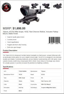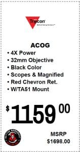 Trijicon, ACOG Rifle Scope, 4X32, Red Chevron Reticle, Includes Flattop Mount, Matte Finish