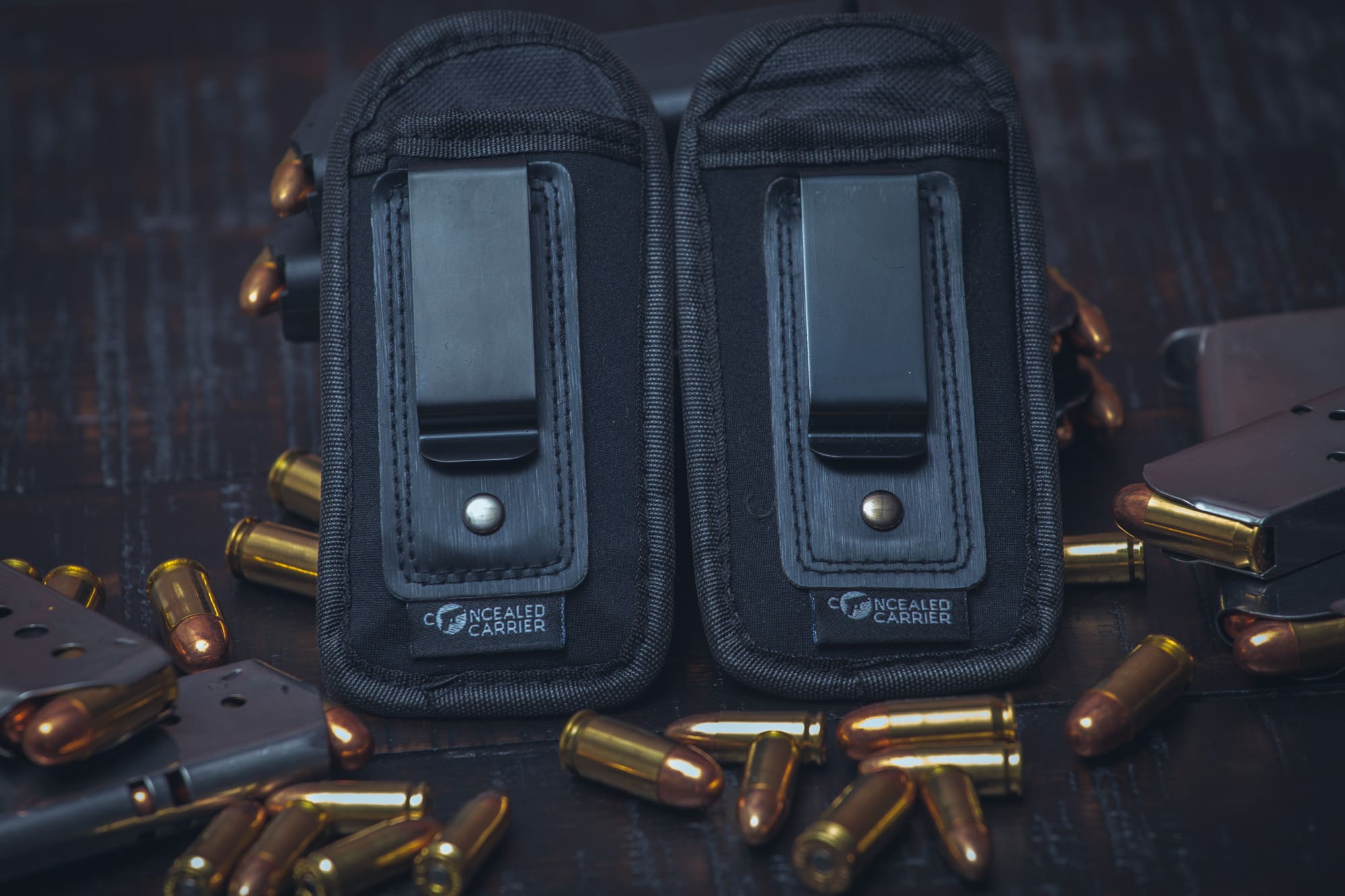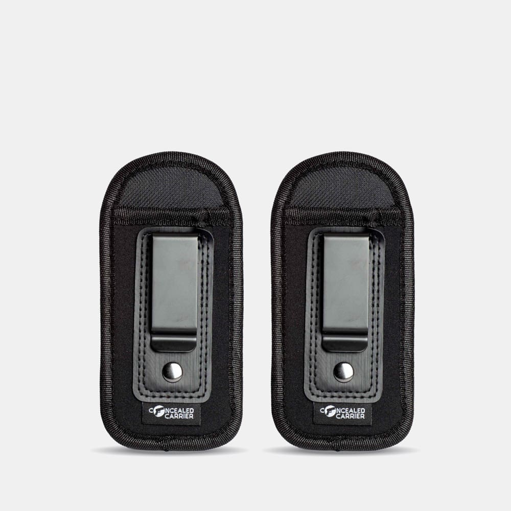 The Universal Concealed Carry IWB Magazine Holster is soft, breathable, and features padded neoprene. Our concealed carry magazine holsters are sold in packs of 2 and will fit any size magazine ranging from sub-compact 7-round 9mm magazines to large double-stack mags. Strong spring steel clips provide retention of the universal magazine holster to one’s belt. The soft material conforms to the shape of the magazines as well as the body of the personal carrying concealed to allow for deep and comfortable concealment with no printing.